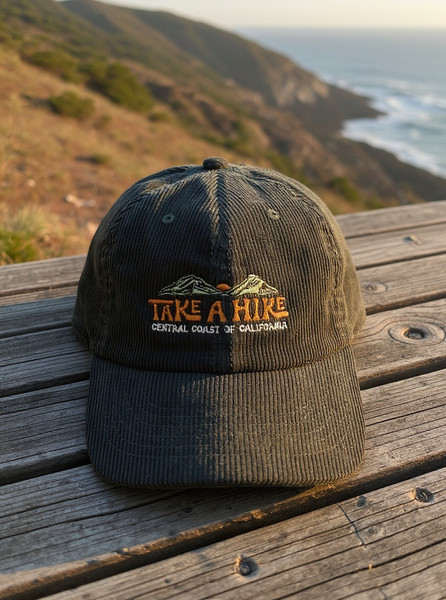 Show your love for the Central Coast and the great outdoors with our new Take A Hike hats — the perfect companion for any adventure. Featuring an embroidered mountain design and “Take A Hike – Central Coast of California,” these hats are made for everyday wear, from trail to town.